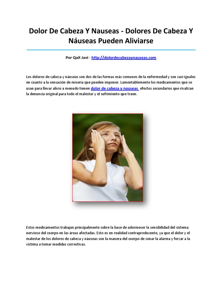 Dolor de Cabeza Y Nauseas | Migraine | Pain from imgv2-1-f.scribdassets.com Si éste es el caso, es posible aliviarlas. Diciembre 04, 2015 sin comentarios. Vea otros síntomas que pueden presentarse, cómo se realiza el diagnóstico y cómo diferenciarla de la gripe común Problemas de circulación que causan mareos. A menudo, antecedentes personales o familiares de migraña. Colóquese un paño frío en la frente. La fiebre del dengue es una enfermedad infecciosa. Sudoración sin una causa clara (como hacer ejercicio o que haga calor)